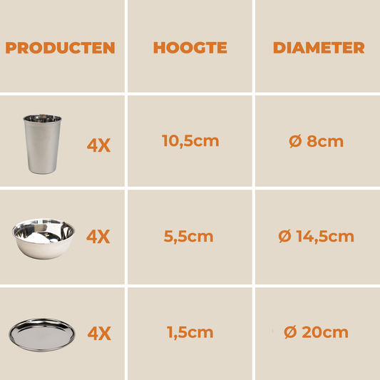 Roestvrijstalen (RVS) Camping Set (4 Personen)