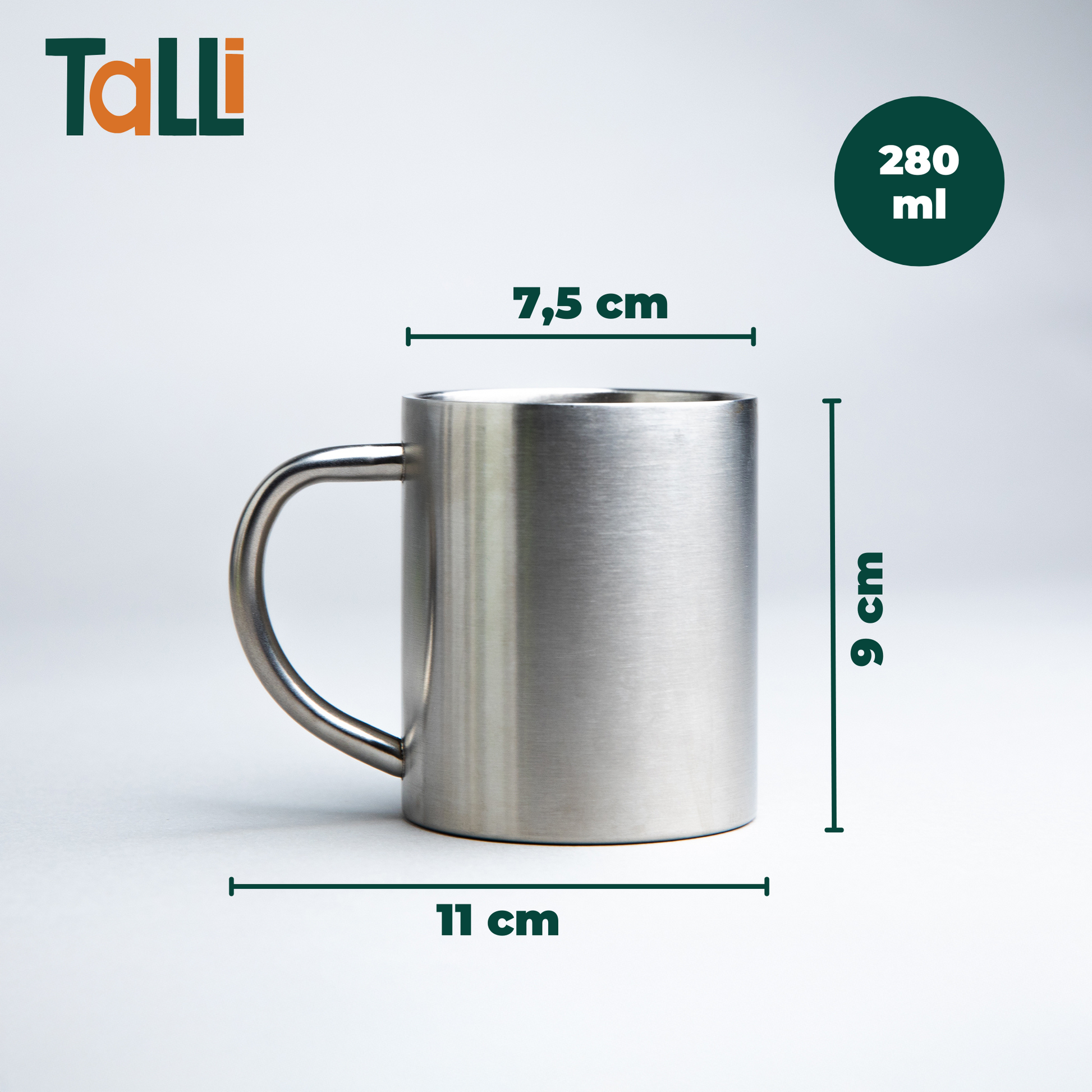- Afmeting: ø 7,5 cm Hoogte: 9 cm - Inhoud: 230ml - Duurzaam ontwerp, 100% roestvrijstaal - Vrij van chemische stoffen, BPA en plastic - Makkelijk schoon - Hoge kwaliteit